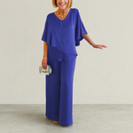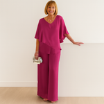 The Camille™ set combines refinement and ease for all occasions. Its flowing top with an asymmetrical V-neckline enhances the silhouette, while the airy butterfly sleeves add lightness and movement. Paired with high-waisted wide-leg pants, it offers a graceful look and optimal comfort. With its soft and flowing fabric, this set is perfect for both a party and a night out on the town, without compromising on style.