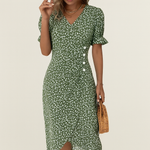 • Design: A stylish summer dress with V-neck and ruffled bell sleeves.